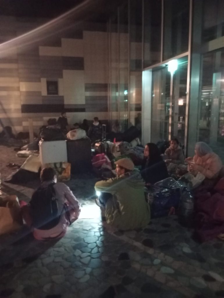 Tout le monde restera. Il faut des tentes et des matelas. On reste camper. Mais les grilles ferment l’accès sous le haut vent monumental du bâtiment. impossible de s’abriter comme hier. La foule frappe dans les mains de longues minutes pour demander l’ouverture des grilles anti-émeute. Mais en vain. Un autre endroit est avisé pour s’abriter. Demain, il risque de pleuvoir…